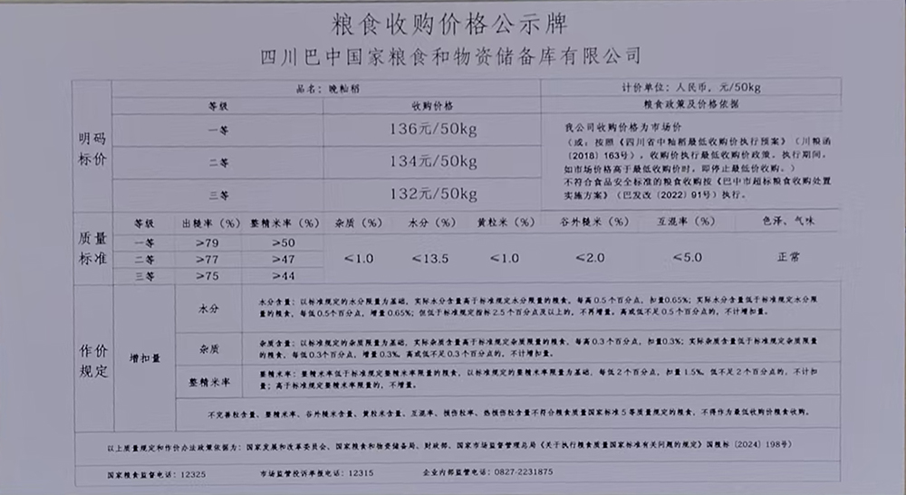 為認(rèn)真貫徹國家糧食收購政策,全面落實省、市決策部署,踐行糧食安全黨政同責(zé)責(zé)任,充分發(fā)揮行業(yè)主體責(zé)任,做好秋糧收購工作,切實保護種糧農(nóng)民利益。現(xiàn)將四川巴中國家糧食和物資儲備庫有限公司2025年秋糧收購相關(guān)信息公示如下: